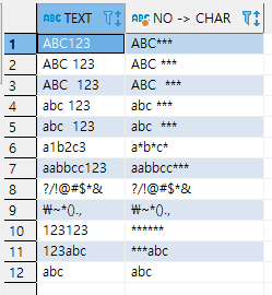 SELECT TEXT, REGEXP_REPLACE(TEXT, '[[:digit:]]', '*') "NO -> CHAR"
