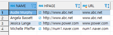 1. 교수테이블에서 홈페이지 주소가 있는 교수들만 조사해서 아래의 화면처럼 나오게 출력하세요.