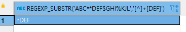 아래 예는 주어진 문자열에서 첫 글자가 공백이 아니고 ( '[^]' ) 그 후에 'DEF'가 나오는 부분을 추출하라는 쿼리입니다.