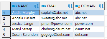 단, 메일 주소는 @뒤에 있는 주소만 출력하세요.