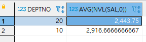 SELECT DEPTNO, AVG(NVL(SAL, 0))