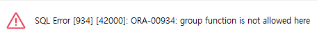 이유는 에러 메시지 처럼 WHERE 절은 그룹 함수를 비교 조건으로 쓸 수가 없습니다.