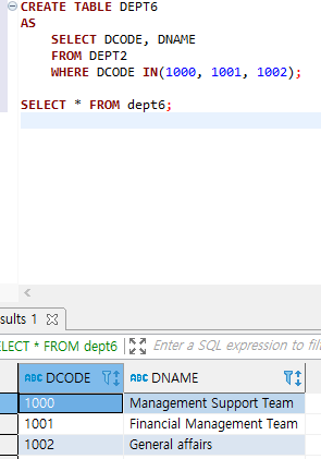 CREATE TABLE DEPT6