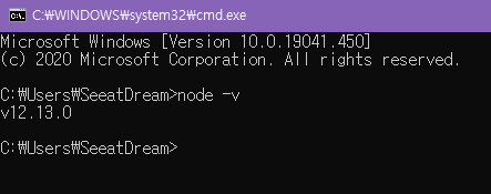 3. node -v 를 쳐서 버전이 나오면 설치 완료
