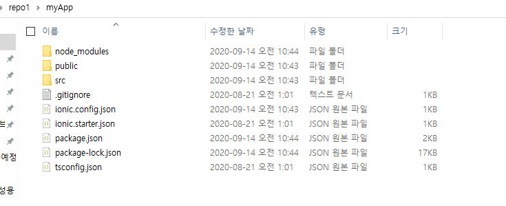 7. ionic start myApp blank --type react ( myApp이라는 폴더를 만들어 blank-빈값 으로 ionic 실행 / type 은 리액트 )