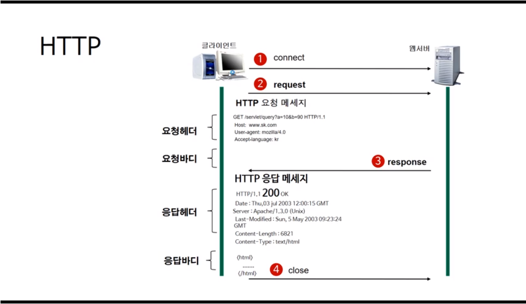HTTP는 서버와 클라이언트가 인터넷상에서 데이터를 주고 받기 위한 프로토콜 이다.