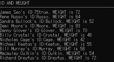 정답 : select name || '''s ID:' || id || ', WEIGHT is ' || weight AS "ID AND WEUGHT" from student;