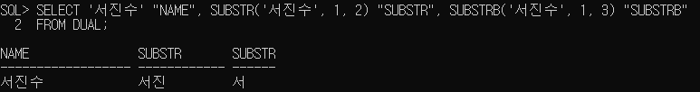 SUBSTRB() : 추출할 자릿수가 아니라 바이트 수를 지정해서 골라냄