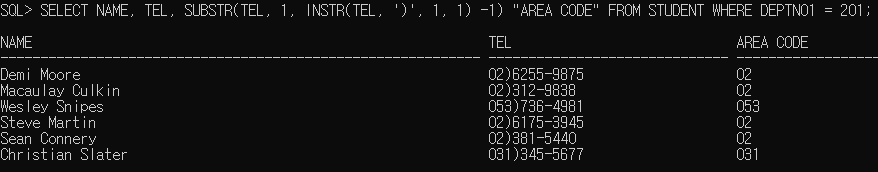 INSTR() : 주어진 문자열이나 컬럼에서 특정 글자의 위치를 찾아주는 함수