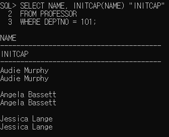INITCAP() : 첫글자만 대문자 나머지 소문자로 출력하는 함수 (영어)