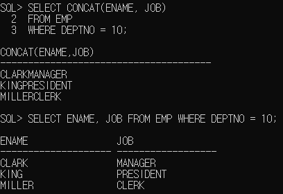CONCAT() : || (OR) 연산자와 동일한 기능