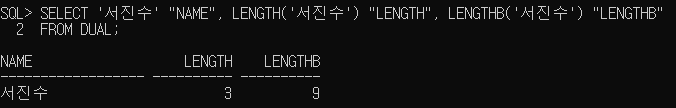 LENGTH / LENGTHB : 입력된 문자열의 길이를 계산해주는 함수