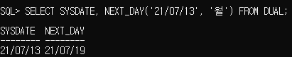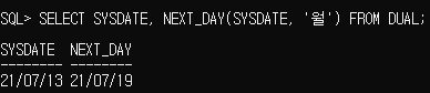 NEXT_DAY : 주어진 날짜를 기준으로 돌아오는 날짜를 출력 / 결과 : 날짜