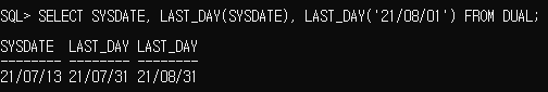 LAST_DAY : 주어진 날짜가 속한 달의 마지막 날짜 출력 / 결과 : 날짜