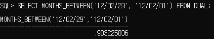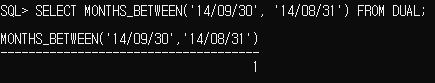 MONTHS_BETWEEN : 두 날짜 사이의 개월 수