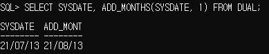 ADD_MONTHS : 주어진 날짜에 개월을 더함 / 결과 : 날짜