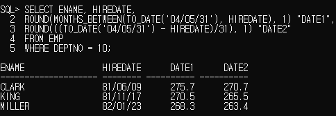 MONTHS_BETWEEN : 두 날짜 사이의 개월 수 / 결과 : 숫자